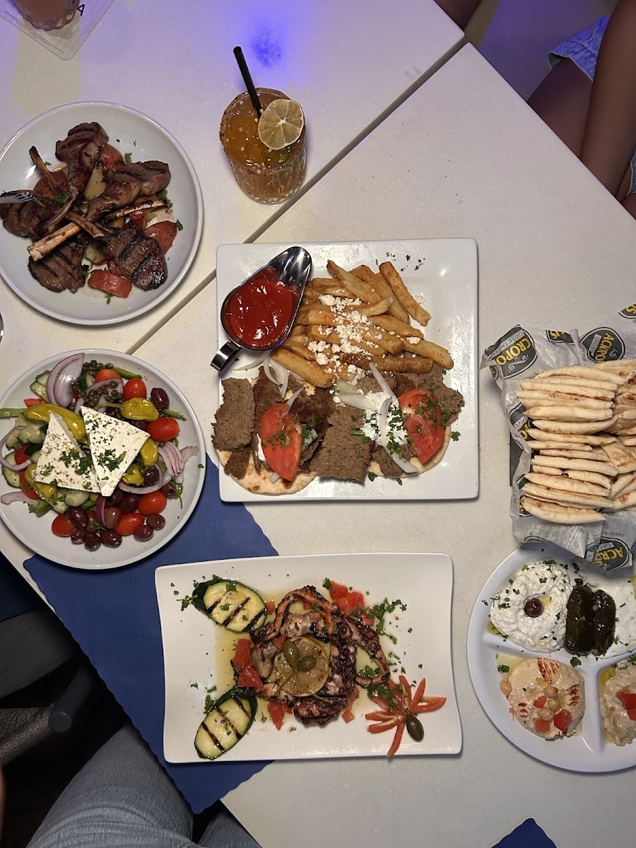 On one visit with friends, we ordered straight from the menu the way regulars often do: a spread of small plates followed by hearty classics. The meze options are a strong starting point, especially when shared. The spanakopita arrives crisp and flaky, and the tzatziki tastes unmistakably fresh daily, something you notice immediately from the texture and balance of garlic and yogurt. Greek restaurants live or die by these details, and here they’re handled with care.